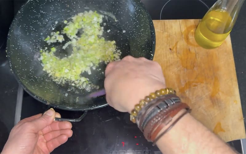 Batir y cocinar como revuelto. Reservar. - Sofrito base: