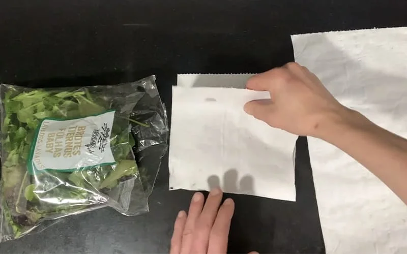 Coloca papel de cocina dentro de la bolsa (en contacto con la ensalada).