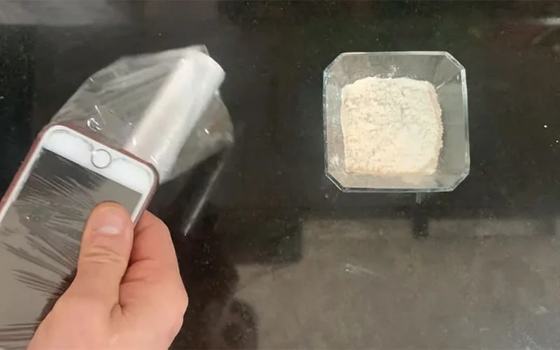 Envuelve el móvil con film transparente.