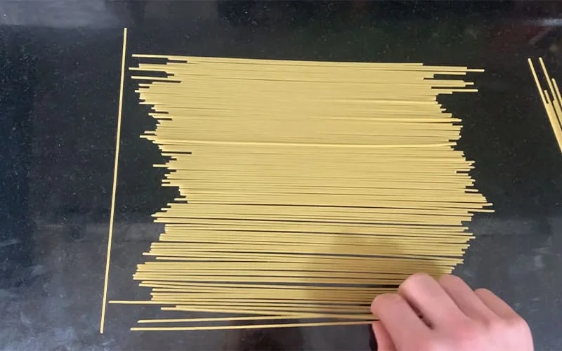 - Medir pasta sin báscula Coloca un espagueti en horizontal como referencia.